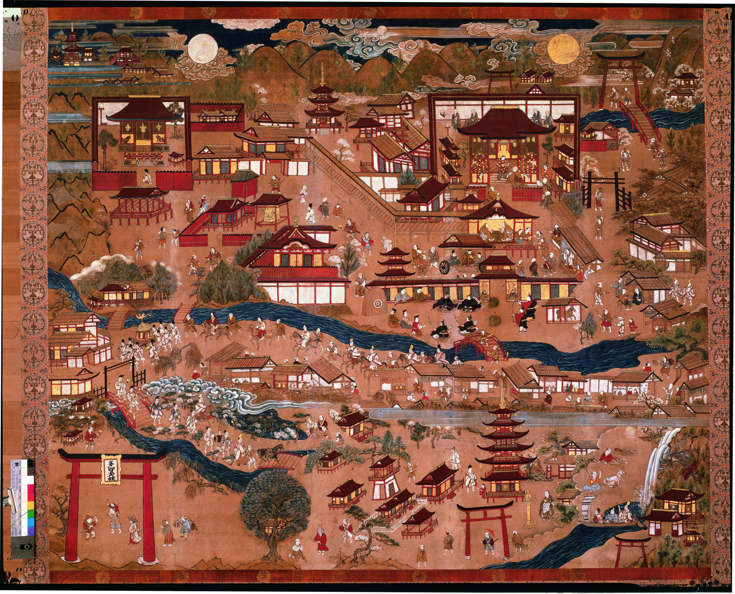 本年は町指定文化財「多賀大社参詣曼荼羅」二幅(安土桃山時代・江戸時代)を特別展示致します。